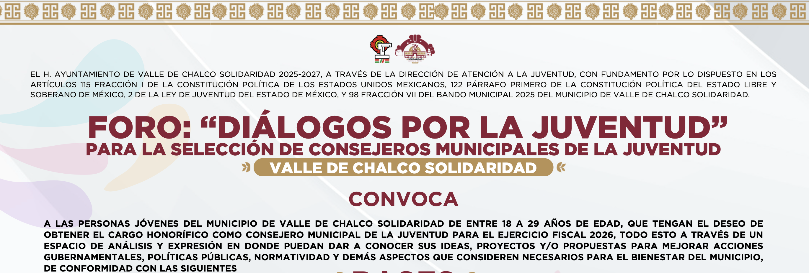 A LAS PERSONAS JÓVENES DEL MUNICIPIO DE VALLE DE CHALCO SOLIDARIDAD DE ENTRE 18 A 29 AÑOS DE EDAD, QUE TENGAN EL DESEO DE
